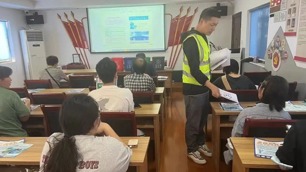 杨梅岭村村委为辖区商铺经营户开展垃圾分类专题培训,现场检查垃圾分类情况并做好指导工作。