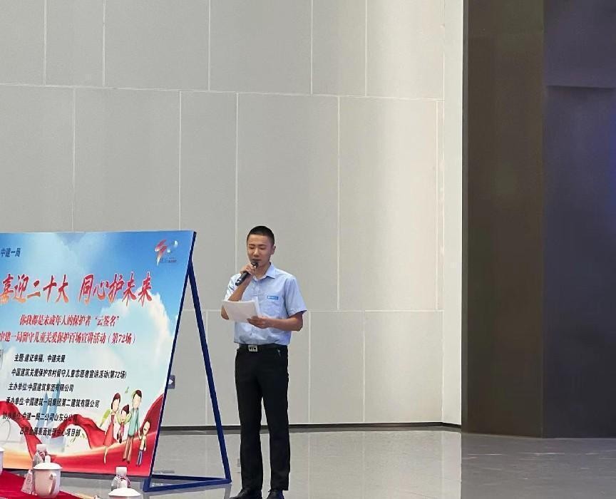 为全面贯彻落实党的十九大和十九届五中、六中全会对农村留守儿童关爱保护的工作部署,进一步强化家庭监护主体责任意识,增进亲情关爱、促进安全生产。由中建一局二公司山东分公司承办的“留守真情,奉献爱心,中国建筑关爱保护农村留守儿童志愿者宣讲活动(第72场)”在日照金属表面处理中心项目如期举行。