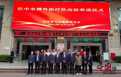 10月20日,巴中市举行欢送第19批援几内亚比绍医疗队出征仪式。市卫生健康委党组书记、主任陈槟参加欢送仪式并对大家提出殷切希望。市卫生健康委党组成员、副主任胡杰,市中心医院、巴州区卫健局、市中医院相关领导参加活动。