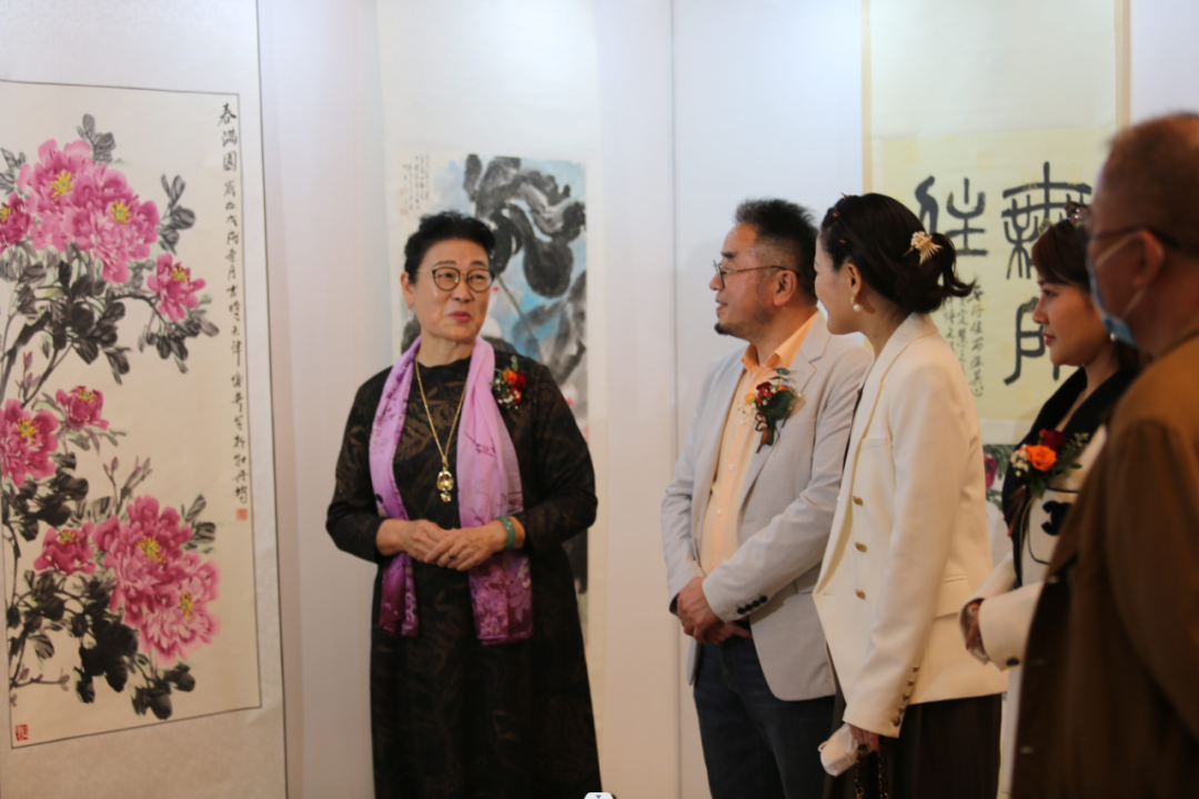 天津市浙江商会浙商文化艺术研究院成立暨书画作品展隆重举行。天津市政协副主席、民革天津市委会主委齐成喜作视频讲话。天津市政协原副主席、天津市志愿者协会会长、天津市文化产业协会会长、天津市慈善协会高级顾问曹秀荣,全国政协原常委、天津市人大原副主任、中华红丝带基金理事长张元龙,天津市政协原副主席张有会,中国武警后勤学院原政委、少将叶松海,天津市政府原副秘书长庞金华,天津市委统战部原常务副部长张炳学,天津市委宣传部副部长杨君毅,天津市文联党组书记、副主席万镜明,天津市浙江商会会长陶开坤,南开区委原书记、天津市慈善协会顾问韩宏范,天津社会主义学院原院长陈卫,天津市保税区管委会原副主任、巡视员、天津市慈善协会顾问、天津市浙江商会驻会顾问周利,天津市合作交流办原副主任张建军,宁河区区委常委、宣传部长裴治,天津市委市直机关工委原副书记方本荣,中国美术家协会副主席、天津市美术家协会主席王书平,中国书法家协会副主席、天津市书法家协会主席张建会,天津市工商联原副主席耿伟,河西区政协原副主席刘国胜,滨海新区人大原副主任许红球,南开区人大原副主任刘顺源,南开大学商学院院长、教授白长虹,著名教育思想家、梅江湾学校董事会董事长王希萍、校长杨乃容,浙商银行天津分行党委书记、行长于滨,著名学者罗澍伟,天津美院教授、美术理论家王振德,著名金石篆刻家刘栋,天津美术家协会副主席、天津美术馆馆长马驰,中国书画报社社长、天津美术学院教授路洪明, 民革天津画院副院长兼秘书长、天津市浙江商会浙商文化艺术研究院院长方大开、执行院长徐明、秘书长朱兆煜等领导出席大会。天津各兄弟商会会长、我会浙商企业家、书画爱好者等各界人士欢聚一堂,