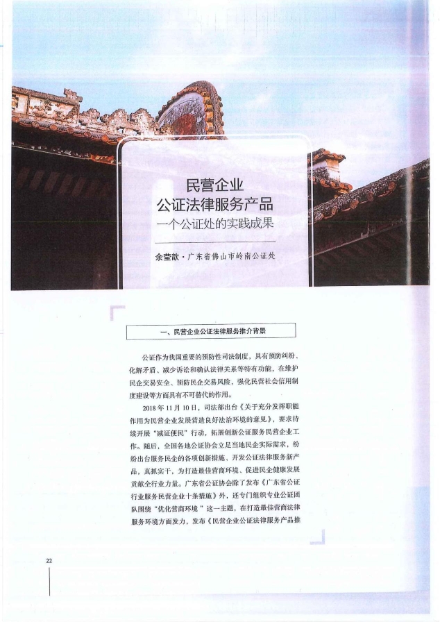 在理论研究方面,岭南公证处曾在《中国公证》发表《民营企业公证法律服务产品——一个公证处的实践成果》一文,其中针对民营企业知识产权保护领域在全行业首次做系统公证服务推介,助力民营企业的稳定健康发展;公证员黄冠坚和王锦松撰写的《关于对某著名商标问卷调查过程的公证实务分析》发表在《广东公证》,分析了保全证据公证运用到涉商标纠纷维权中的独特价值。
