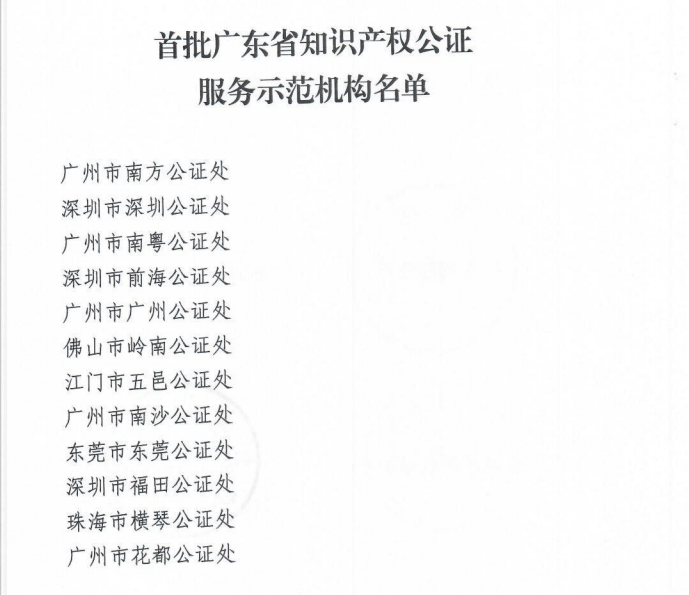 近日,由广东省司法厅、广东省市场监督管理局、广东省知识产权保护中心、广东省公证协会发起,经全省各地市筛选上报和专家评审,12家公证处为首批广东省知识产权公证服务示范机构,佛山市岭南公证处成功入选。