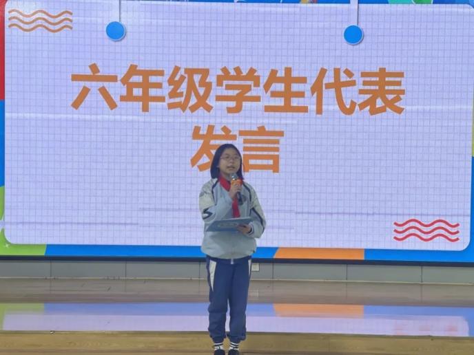 六年级学生代表在发言中表示,将更加严格地要求自己,率先垂范,带领着弟弟妹妹们好好学习,好好生活,爱上学习,爱上锦小。