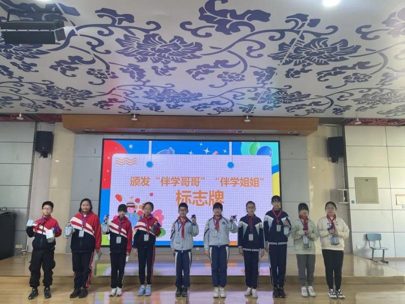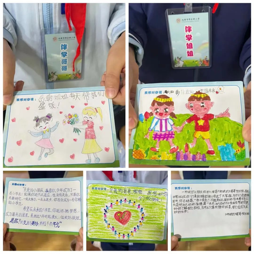 班级结对以后,六年级的哥哥姐姐们将佩戴“伴学哥哥”“伴学姐姐”的标志,在两操及大课间、午餐管理、一日清洁、课间休息等时段,全方位帮助一年级的小朋友尽快适应小学的学习生活。