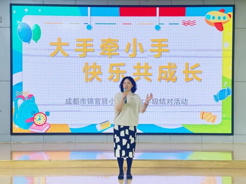 为让一年级学生能尽快适应小学教育,尽快融入锦官驿小学这个大家庭,同时让六年级学生学会担当,挑起责任,学会自我服务,为他人服务,成都市锦官驿小学于2022年10月20日举行了“大手牵小手,快乐共成长”一年级、六年级班级结对仪式。