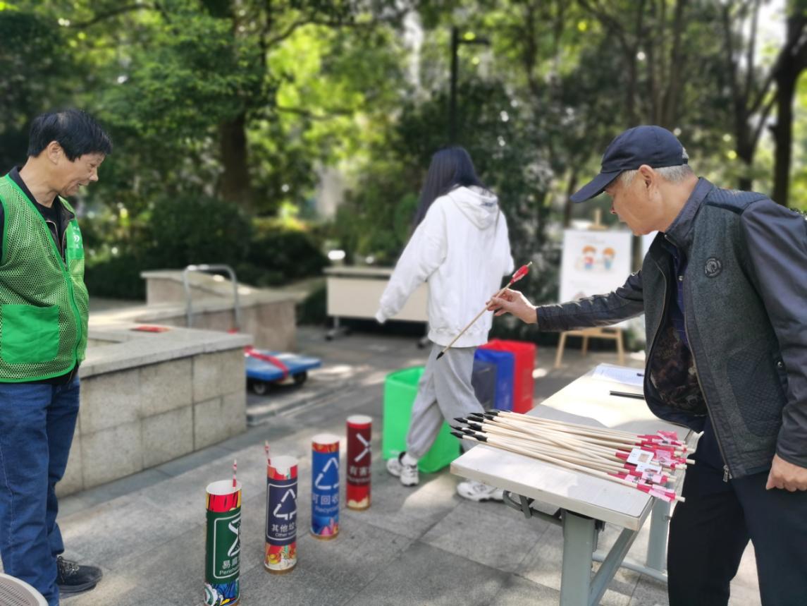 活动现场,城管小姐姐及社区工作人员通过发放垃圾分类宣传手册、讲解《浙江省生活垃圾管理条例》相关政策等方式积极向居民普及垃圾分类知识。活动另一边,分类互动区,居民积极体验宋韵投壶大挑战、垃圾分类沙包挑战赛等游戏环节,玩得不亦说乎,对垃圾分类知识有了更深入地了解,活动趣味十足,边玩边学,意义非凡,一副其乐融融的景象。