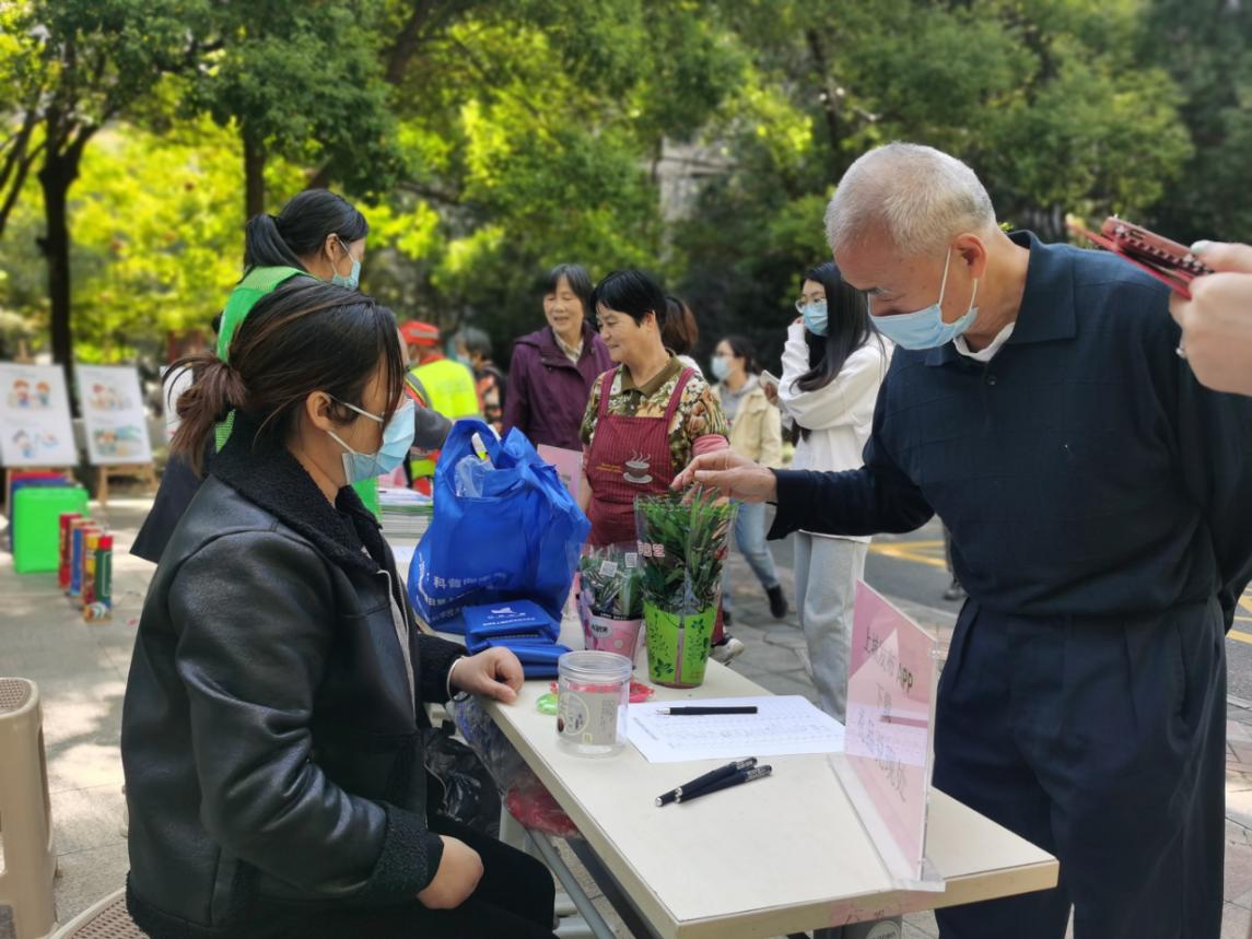 绿植兑换区,一盆盆生机盎然的绿植吸引了大家的眼球,大伯大妈们在工作人员的帮助下,积极地将家里积攒的废旧电池拿来兑换。2节废电池可换取环保袋,6节废电池可换取心仪绿植一盆,置换期间,工作人员不忘向居民介绍小区废旧电池回收处和废旧电池的危害。