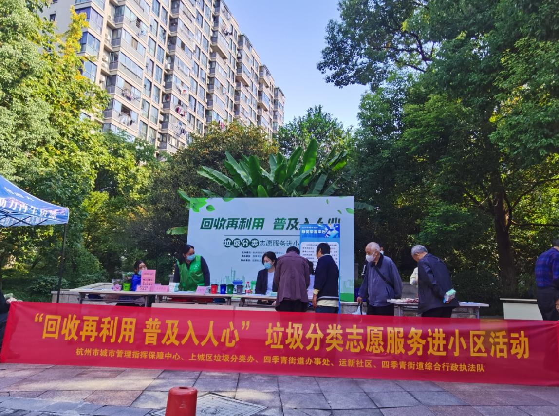 为了更好地推动垃圾分类,增强社区居民的垃圾分类意识,有效提升居民垃圾分类的知晓率、参与率及准确率,营造全民共建共治共享的良好氛围。10月24日上午,杭州市城市管理指挥保障中心及上城区分类办联合四季青街道在运新社区小广场开展“回收再利用 普及入人心”垃圾分类志愿进小区宣传活动。