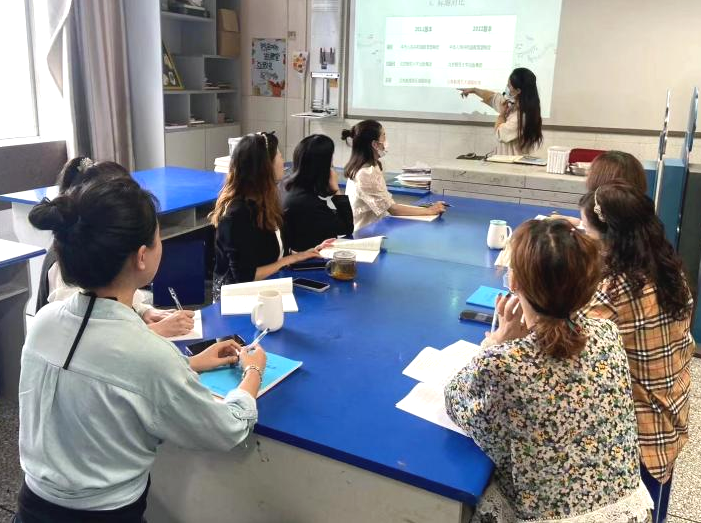 英语组老师同样将2011年版课标和2022年版课标进行对比分析,认为新课标从多个方面进行了改革,强化了课程育人导向,优化了课程内容结构,研制了学业质量标准,增强了指导性,加强了学段衔接。新课标更强调英语课程工具性和人文性的统一。老师们提到,作为一线教师应该认真学习和领悟新课标理念,不断优化课程设计,这样才能紧跟时代步伐,培养时代新人。