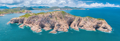 香港地质公园的早白垩世流纹质火山岩柱群源自约1.4亿年前该地区的火山活动。岩柱罕有地由富含二氧化硅的酸性流纹质火山岩形成,分布在西贡粮船湾等约100平方公里海陆区域。这些岩柱的直径平均为1.2米,最粗达3米,现存总厚度估计达400米,露出地表的高度达100米。图为香港地质公园瓮缸群岛——横洲,小岛展示了柱状节理,以及海蚀崖、海蚀洞、海蚀拱等海岸侵蚀地貌。吴善斌摄(人民视觉)