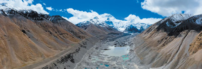 藏南绒布峡谷滑脱构造体系是一组平行喜马拉雅山造山带的低角度正断层性质的韧性剪切带,沿着喜马拉雅的整个走向进行延伸,其发现彻底改变了喜马拉雅造山带的模型,极大提高了对喜马拉雅造山带构造—变质演化的认识。绒布峡谷是藏南拆离系发育的典型地区,具有重要科学价值。图为珠峰北坡,最远处为珠峰,中部是绒布冰川,近处是绒布冰川湖,两侧为绒布沟壁,壁上黑白岩石分界处即为绒布峡谷藏南拆离系。王承文摄(人民视觉)