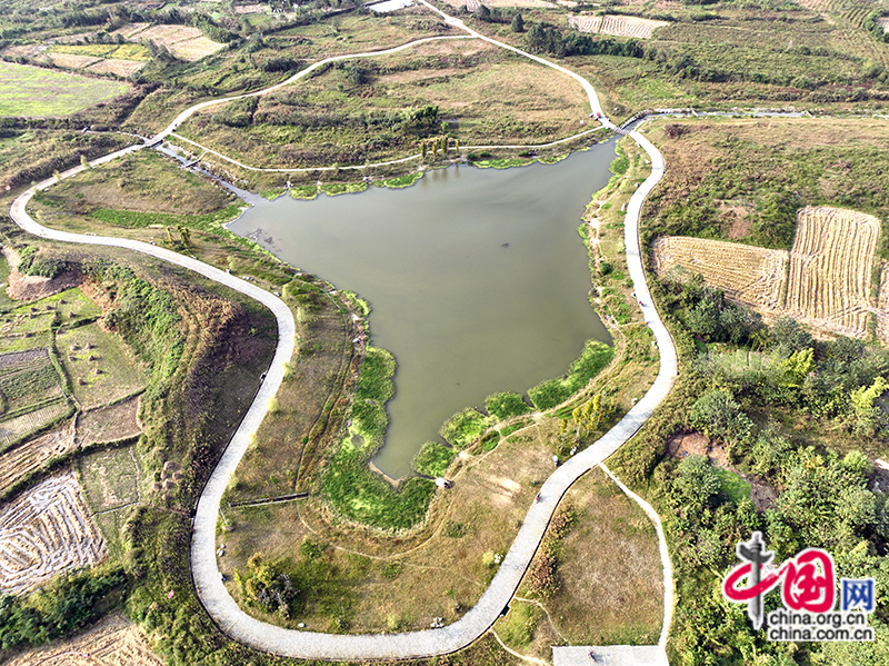 深秋时节,麓棠镇三合村玫瑰谷生态清洁小流域湿地公园草木葱茏,空气清新,游人漫步其间,怡然自得。沟壑、黄土、荒凉曾是这里的写照,水土保持工作的有效开展让这里变成了一个生机盎然的旅游景点。当地村民说,“村在景中,人在画中,绵竹的绿色名片越擦越亮。”