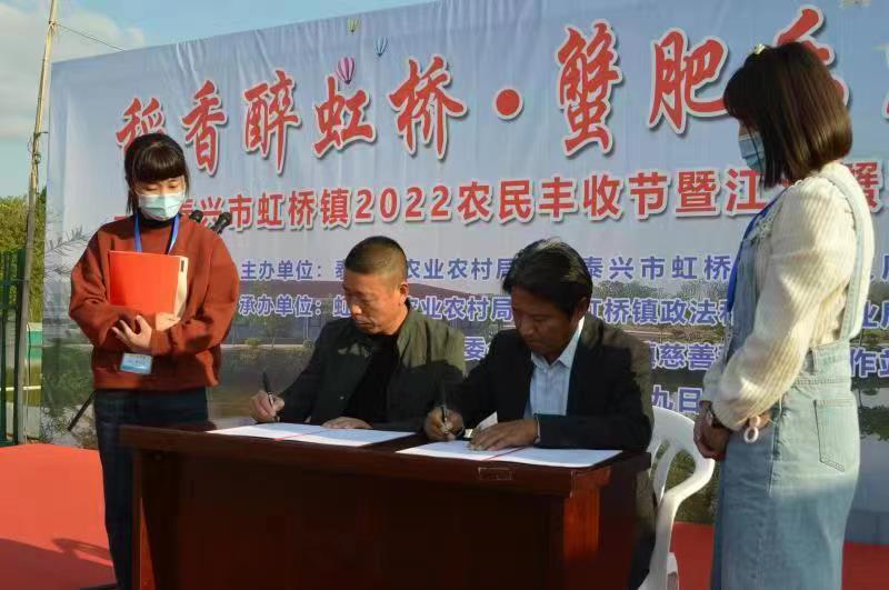 “今年的虹桥农民丰收节活动全程进行网络直播,主要目的是让绿色大米和江沙蟹两大‘当家花旦’走向更广阔的市场”。虹桥镇农业农村局局长赵晓龙介绍,近年来,虹桥镇坚持以工业化理念深耕现代农业,持续加大现代农业基础设施投入,稳步推进低产田改造,高标准农田已占基本农田的80%,粮食总产稳定在6万吨以上,创成江苏省味稻小镇和泰州市级现代农业产业园,已被认定为江苏省绿色优质农产品基地,培育形成了“江泰虹”“四仙大米”“泰六圩”等一批绿色大米品牌集群。招引实施粮食种植加工、江沙蟹生态养殖等5000万元以上重大农业项目3个,总投资2.7亿元,被确定为泰州市乡村振兴中心镇创建单位。