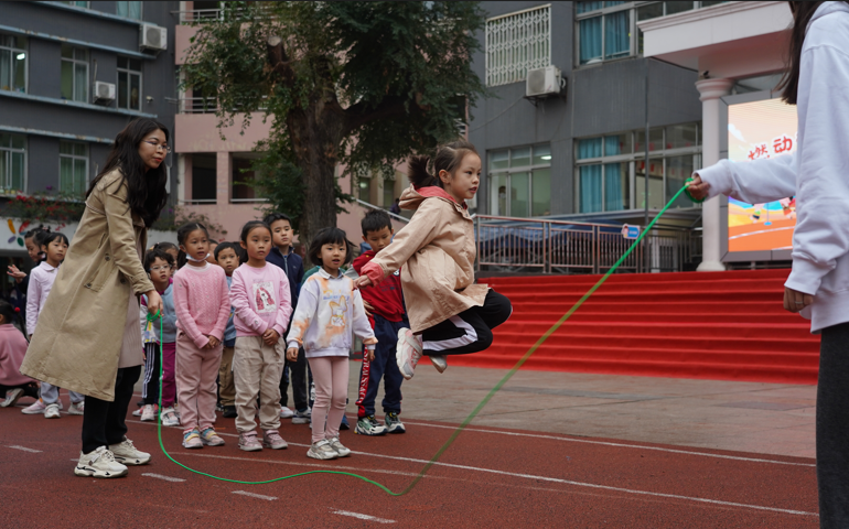 随后,在跳绳比赛的一声令下,赛场的热情瞬间推上热潮,加油团的阵阵欢呼激励着运动员们,班级的荣誉感牵动着每一位师生,老师们奋力的摇着跳绳,同学们像一个个灵动的小兔子,穿梭跳跃在跳绳中。
