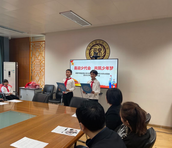 秋天是收获的季节,一片生机;秋天是希望的季节,充满希望。在这秋高气爽、丹桂飘香的日子里,成都市锦官驿小学举行了2022年秋季少先队大队长竞选暨第四届少代会。参加此次大会的人员由学校全体大队委、各中队少先队代表、校级家委会代表以及学校教师代表、党支部代表组成。会议在小主持人慷慨激昂的开幕词和队员们振奋人心的掌声中拉开了帷幕。