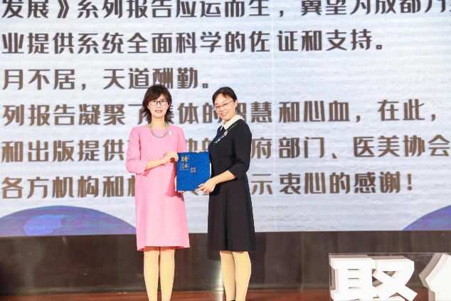 活动现场,《成都市医疗美容产业发展报告(2019)》出版社领导及主编向《成都市医疗美容产业发展报告(2020—2021)》第二本医美产业蓝皮书视频致贺。