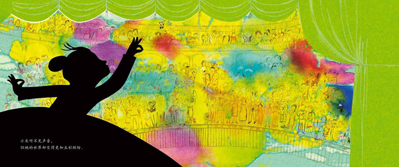 《寻找声音的女孩》一书由著名作家殷健灵著作,英籍华人郁蓉绘图。殷健灵以听障舞蹈家邰丽华的成长经历为蓝本,用诗意化的语言讲述了失聪女孩小米是如何感知声音,如何通过自己的努力,成长为一名舞蹈家,赢得世界喝彩的故事。