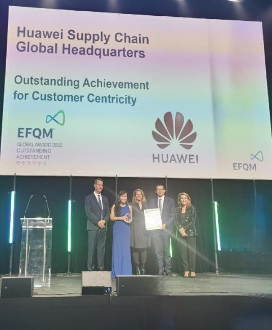 欧洲当地时间2022年10月27日,欧洲质量管理基金会(EFQM)在法国里昂举行2022年EFQM全球奖(原欧洲质量奖)现场颁奖典礼。EFQM全球奖每年颁发一次,本年度共有12家组织获奖。由于受新冠肺炎疫情影响,这场迟到的线下颁奖盛典,吸引了来自全球40多个国家的代表参加。华为荣获欧洲质量管理基金会(EFQM)颁发的“以客户为中心杰出成就奖”,是首家获得该全球知名奖项的中国公司。