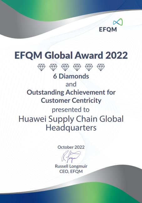 EFQM首席执行官Russell Longmuir表示:“作为真正的全球领导者,申请方(华为)持续关注客户及其需求,这一点给评审团留下了深刻印象。EFQM认为,华为通过与全球合作伙伴和供应商密切合作,营造了和谐的工作环境和文化。通过持续感知员工需求和组织以及管理者的自我改进,员工享受为供应链工作。无论以任何标准衡量,这都是令人瞩目的成就。”