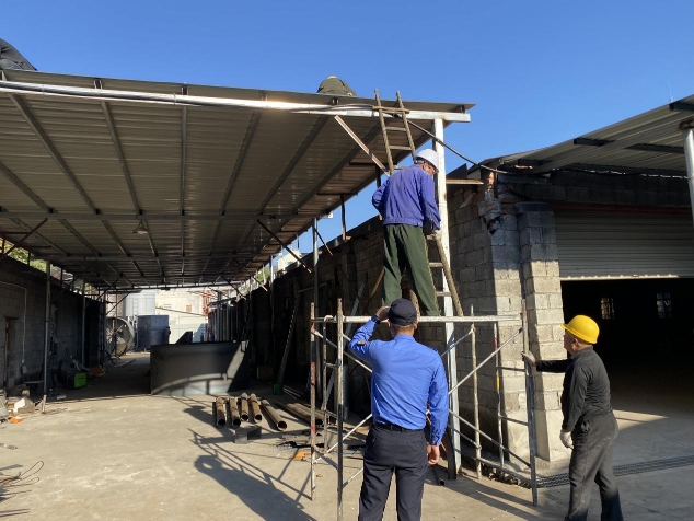 据了解,该处违法建设位于某厂区内,经营者为图便利,在厂区消防通道内搭建了面积约400平方米的钢结构雨棚,用于工厂日常生产经营。
