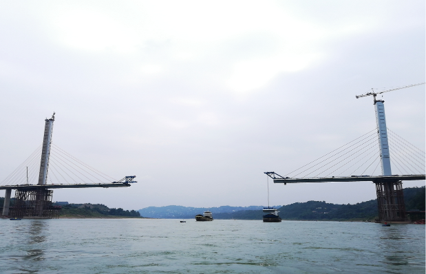 泸州市白沙长江大桥桥梁全长1321.7米,桥面设计为双向四车道,采用主跨为520米的双塔独柱中央平行索面斜拉桥型,位居同类型桥梁跨径世界第一,预计2023年5月建成通车。