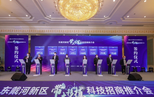 会上,东戴河新区管委会主任徐忠满推介了东戴河新区和带土移植转化中心,解读了带土移植科技创新政策及“兴葫英才计划”;佳粮(天津)实业有限公司、秦皇岛绿新节能环保科技有限公司、天津市渤海新能科技有限公司、秦皇岛华泽节能环保有限公司等14家企业机构与东戴河新区签订了战略合作协议;南开大学、天津大学与辽宁(东戴河)带土移植转化中心共建实训基地揭牌。