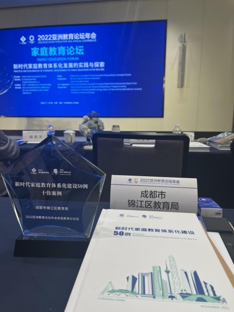 会上,发布了《2022年中国家庭教育体系化发展50例》白皮书,锦江区教育局的家庭教育特色案例《家长核心素养:成都市锦江区推进家庭教育工作的“公因式”》,入选“新时代家庭教育体系化建设50例”,并上榜“十佳案例”。