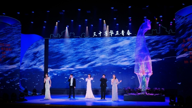 晚会依托多媒体技术,搭配情景演绎,将岁月的陈香与时代的芳芬融为一体,为观众呈现了一台特色浓郁、主题鲜明的精彩演出。情景宣传片《正青春》蕴藏着踔厉奋发三十载的沧桑巨变,娓娓道来间展现青春泰兴的昂扬奋进;情景故事《银杏飘香的地方》聚焦招商双锐的勇毅前行,让观众聆听追梦足音;微型音乐剧《泰兴,你好!》讲述了海外贤才满腔豪兴、纷沓而至在泰兴安家落户的幸福生活;歌曲《凝望你的脊梁》汇聚磅礴力量,一座座不朽的历史丰碑回荡着胜利的交响……