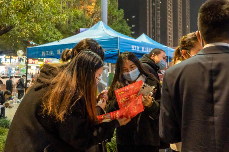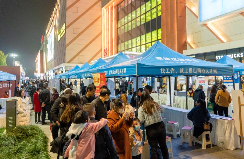 11月18日晚,眉山市东坡区新联会在区委统战部、区人社局、区退役军人事务局、区总工会等部门指导下,在东坡区万达广场成功举办眉山首场“人才夜市”公益招聘会。