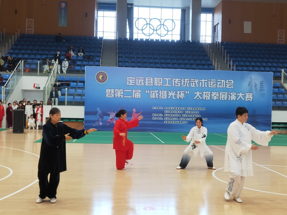 为促进定远县全民健身活动蓬勃发展,,弘扬中华优秀传统文化,提高广大职工身体素质,展现全县职工团结拼搏、昂扬向上、锐意进取的精神风采。11月20日上午,2022年定远县职工传统武术运动会暨第二届“戚继光杯”太极拳展演大赛在县体育中心综合馆举行。本次比赛由县委宣传部、县教育体育局、县文化旅游局、县总工会主办,县武术协会、太极拳协会承办。县委常委、县宣传部部长方浩亮,县总工会党组书记肖成山,党组成员、副主席郭宝林等有关领导出席活动。