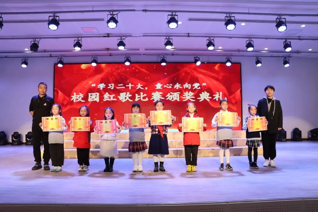 比赛现场,《歌唱祖国》、《祖国在我心窝里》……同学们用一首首脍炙人口、经久不衰的红色歌曲,表达出对党和祖国的热爱与赞美。一首首红色经典,一句句时代强音,在孩子的歌声中回响;一颗颗赤子之心,一腔腔报国热情,融合在整个活动中,生动演绎出一堂融合家国情怀与青春奋进激情的“思政大课”。经过激烈的角逐,在同学们的欢呼声中,各奖项尘埃落定依次揭晓。