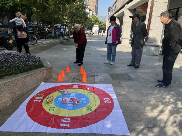 活动伊始,在社区工作人员的指导下和讲解后,活动正式开始。活动现场,设有套圈、高尔夫球、沙包等运动项目,深受老年朋友的喜欢,在游戏过程中享受活动带来的乐趣,居民朋友们参与度极高!“差一点就套中了,年纪大了眼神不好了,哈哈哈!好久没玩了,今天玩得很开心!”参与本次活动的高老奶奶边玩边笑着说,高奶奶身边围绕着一群给老奶奶加油的居民朋友,现场氛围非常活跃。