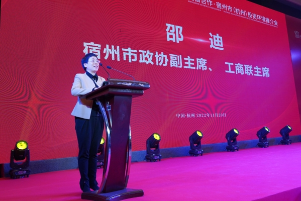 宿州市人民政府副市长杨泽胜,市政协副主席、市工商联主席邵迪,宿州市文化和旅游局党组书记、局长李伟,杭州市工商联法社部部长方国庆,杭州市宿州商会会长王峰等分别在大会致辞。