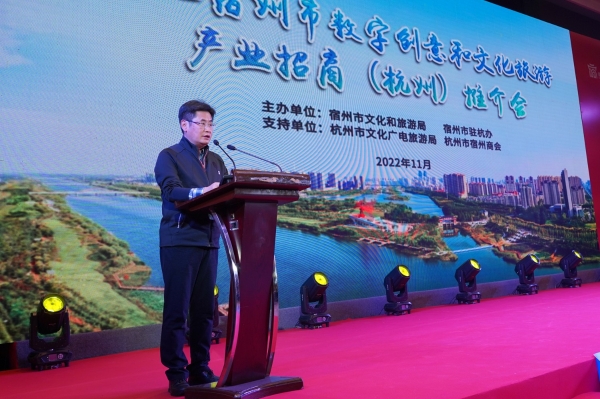 推介会上先后观看了《归宿》主题宣传片、运河古城·云都宿州文旅形象宣传片、宿马园区宣传片;宿州市文化和旅游局围绕“数字创意、文化旅游”等产业进行招商推介,宿马园区管委会就开发区招商政策进行介绍等。