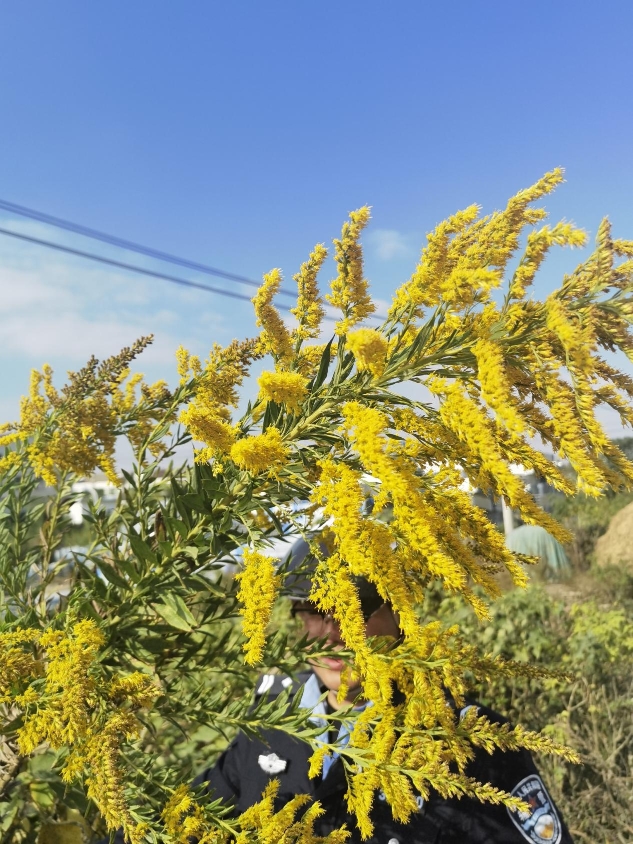细一看,这花怎么那么像之前在新闻上看过的“加拿大一枝黄花”啊?因为之前有巡查罂粟花的经验,民警立即通过手机软件对这株花进行查找识别,结果显示这就是“加拿大的一枝黄花”。为了保险起见,民警又通过照片、视频与农林部门进行联系确认,该黄花确实为“加拿大一枝黄花”。“这种植物繁殖能力强,危害大,无害化处理怎么操作?”考虑到这花的繁殖传播特点,民警根据林业部门的指导将该花铲除,并进行了无害化处理。