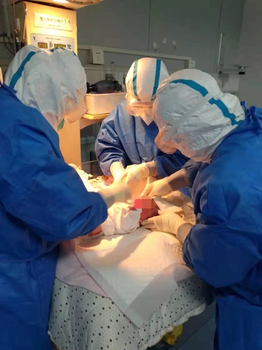 2022年11月24日23:10分,孕妇出现破水、不规律宫缩情况,根据市级产科专家、新冠肺炎防治专家和儿科专家等多学科讨论意见,并结合孕妇意愿,决定实施剖宫产。各科室立即紧张有序地启动医院应急病房新冠孕妇紧急分娩应急预案,准备迎接新生命的诞生。在成都市公卫中心院领导的总体部署及医务部、护理部、院感部三部门的全程指导下,11月25日03:17分,在负压手术室,一名男婴在医护人员的齐力守护下呱呱坠地,母子平安!那一声啼哭,在凌晨时分显得特别的清脆响亮。听到这充满生命活力的哭声,穿着厚厚防护服、汗湿全身的医护人员脸上露出了欣慰的笑容……新生儿剖出后,为避免交叉感染,被迅速转运至特定病房,由医院新生儿科医护人员和助产士照顾,并已行第一次核酸检测,结果为阴性。因为这个新生命的降临,为这个阴霾的初冬,带来了一抹希望的曙光。几天的辛苦努力换来了母子平安,医护人员的汗水没有白流!成都市公卫中心将继续做好新冠肺炎疫情救治工作,秉持“人民至上、生命至上”宗旨,护佑成都人民的生命安全和身体健康!(唐梦玲、童丽涛)