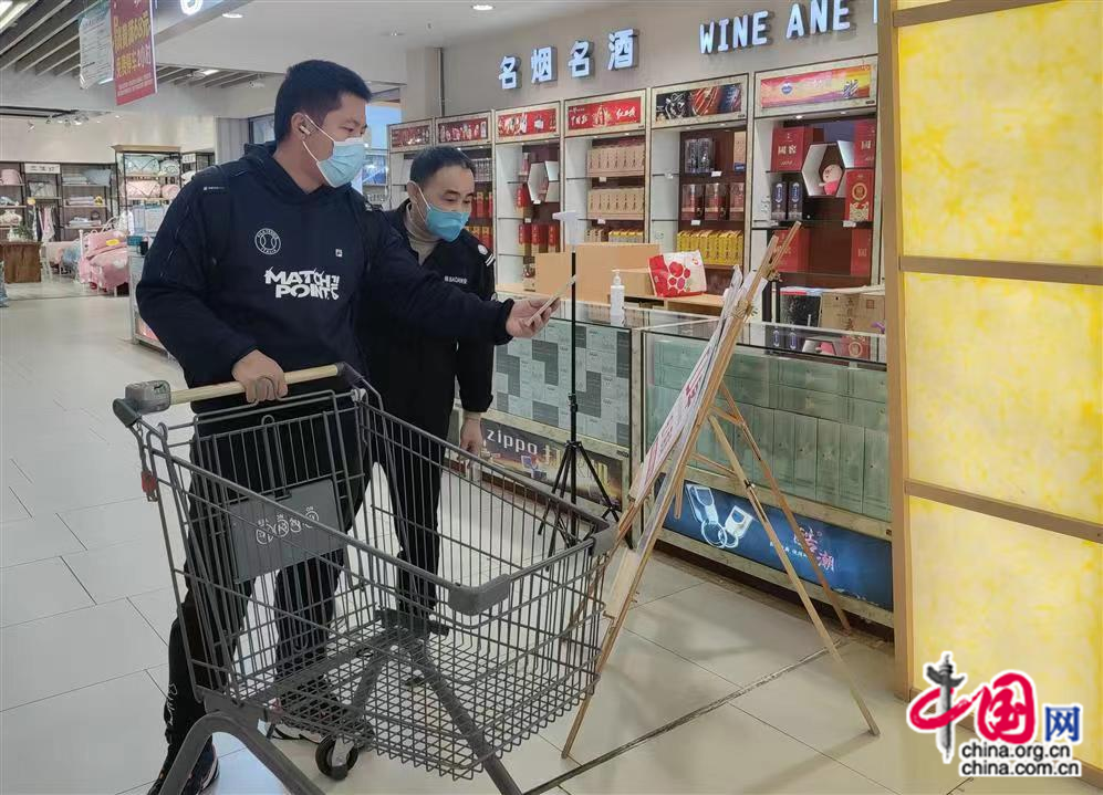 除了农贸市场,旌阳区各超市也加强了疫情防控管理。在德阳万达广场的圣辉超市,工作人员对每一位进入超市的市民进行“一扫四查”,并落实好戴口罩、体温监测等疫情防控要求。