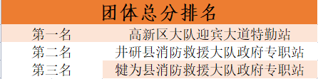 竞赛过程中,参赛队员顽强拼搏、挑战自我,争先创优,唯旗是夺,赛出了水平、赛出了风格。经过3天的激烈角逐,高新区大队迎宾大道特勤站、井研县消防救援大队政府专职站、犍为县消防救援大队政府专职站等代表队获得团体总分前6名。