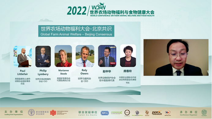 2022年11月26日,2022世界农场动物福利与食物健康大会成功举办。在本届大会“北京共识”环节,英国皇家防止虐待动物协会国际事务总监Paul Littlefair、世界农场动物福利协会CEO Philip Lymbery、英国驴慈善协会代理首席执行官Marianne Steele、世界马福利协会CEO Roly Owers、世界动物保护协会驻中国首席代表赵中华、中国农业国际合作促进会常务副会长兼秘书长席春玲,分别做了主题演讲。
