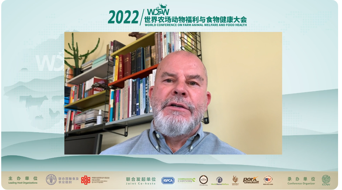 世界农场动物福利协会CEO Philip Lymbery在主题演讲中指出,疫情影响了人们生活的方方面面,促使我们重新思考人类和动物之间的关系。