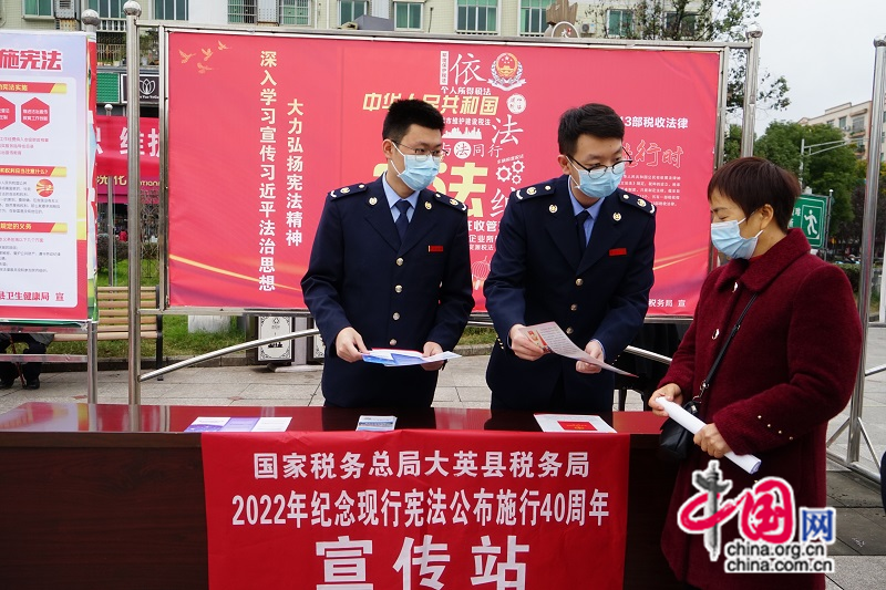 2022年12月4日,是第九个国家宪法日,也是我国现行宪法公布施行四十周年。为进一步弘扬宪法精神、维护宪法权威,国家税务局大英县税务局结合税收工作实际,积极开展以“宪法+税法”为主题的系列法制宣传活动,让宪法精神深入人心,切实提升老百姓法治意识和法律思维。