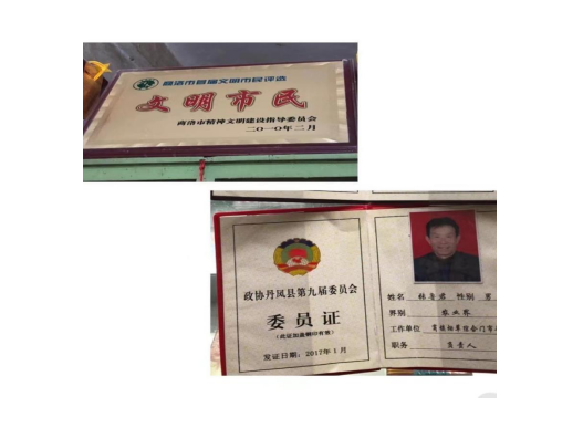在经营之余,年过半百的张鲁军的身影也积极活跃在社会各类活动中。县上组织的文化宣传、知识讲座只要他不忙就一定在台下坐着,并且只要听到什么好政策、新知识就赶紧回来讲给乡亲们听;镇上组织的年度行风评议工作经常邀请他出席;邻里之间出现了矛盾纠纷,村委会也会邀请他去调解说和。因为他的热心、积极、乐于助人,2017年被选为政协丹凤县第九届委员“政协委员”,2010年获得商洛市首届“文明市民”称号。