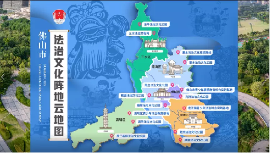 佛山市法治文化阵地云地图,通过VR全景技术,将法治文化公园等法治阵地。从线下搬到线上,全方位展示线下法治阵地、各景点法治文化元素。