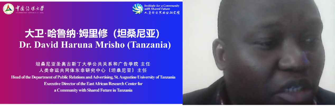 坦桑尼亚圣奥古斯丁大学公共关系和广告学院主任、人类命运共同体东非研究中心(坦桑尼亚)主任大卫·哈鲁纳·姆里修博士在《可持续发展的共同体:非洲能向中国借鉴什么?》的演讲中,围绕中国与坦桑尼亚的合作关系阐释了命运共同体与可持续发展的深刻内涵。他表示,中国在过去几十年中经济取得了令人瞩目的增长,数百万人摆脱了贫困,对于国际社会具有重大意义,真正体现了2030年可持续发展议程的贯彻实践成果。坦桑尼亚要继续在可持续发展和推动全世界共同进步方面与中国保持密切合作与学习沟通,巩固双方友谊,携手为实现更美好的未来而努力。