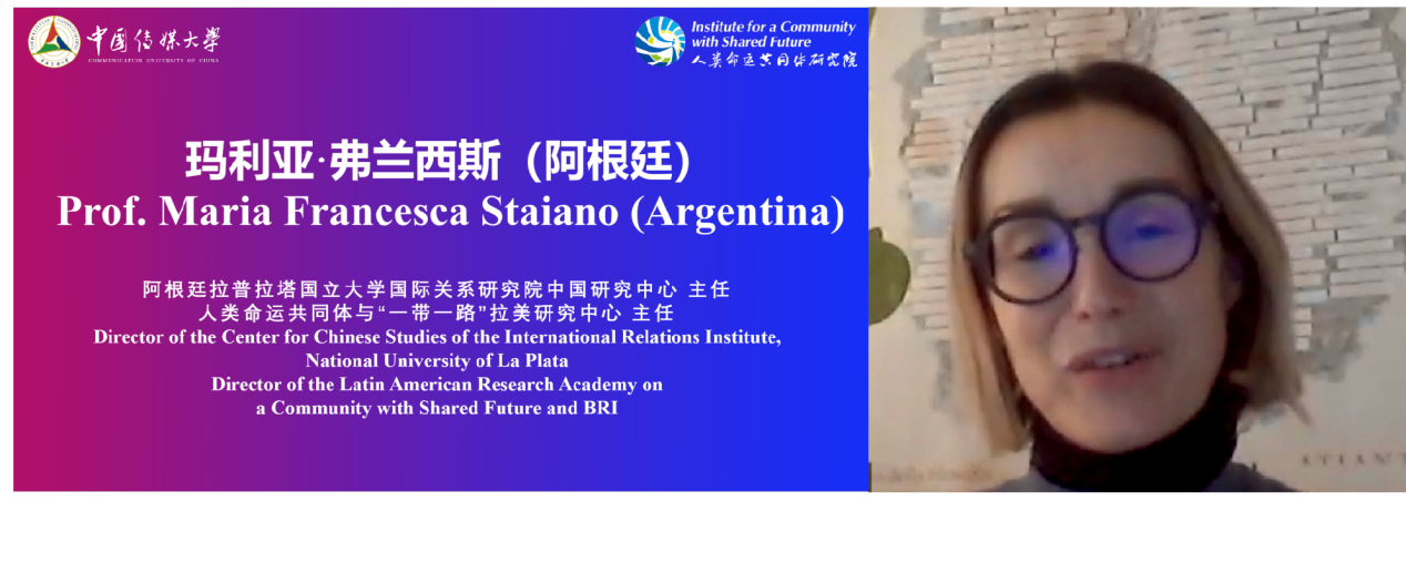 阿根廷拉普拉塔国立大学国际关系研究院中国研究中心主任、人类命运共同体与“一带一路”拉美研究中心主任玛利亚·弗兰西斯教授的演讲主题为《中国的“绿色原则”:新时代新人文主义与命运共同体》。她认为,在2030年可持续发展议程的支持下,越来越多符合可持续发展建设的新人文主义愿望在全球范围内愈加显现出来,期望能够建立一种全新的科学模式,将自然环境与人类置于中心,推动技术、道德和理性层面的发展。弗兰西斯教授参考中国新民法典中的规定,认为人文主义元素与“命运共同体”理念中的“人性”是彼此呼应关系,希望各国能以此为经验,提升人文主义对可持续发展的指导作用。