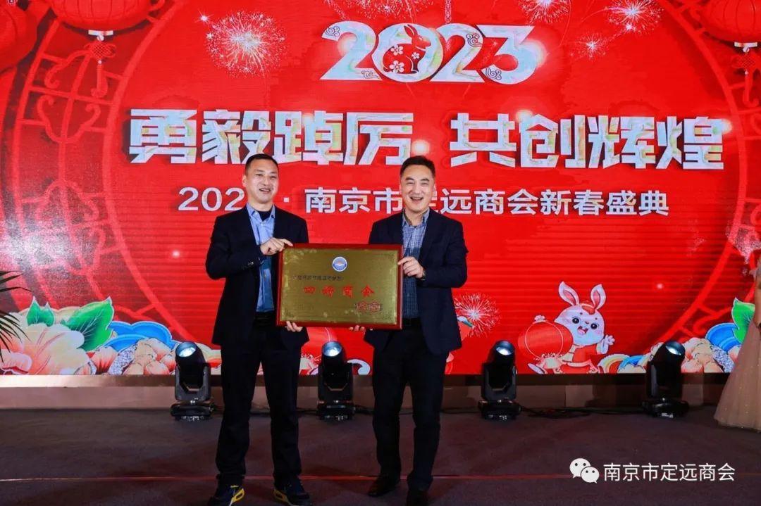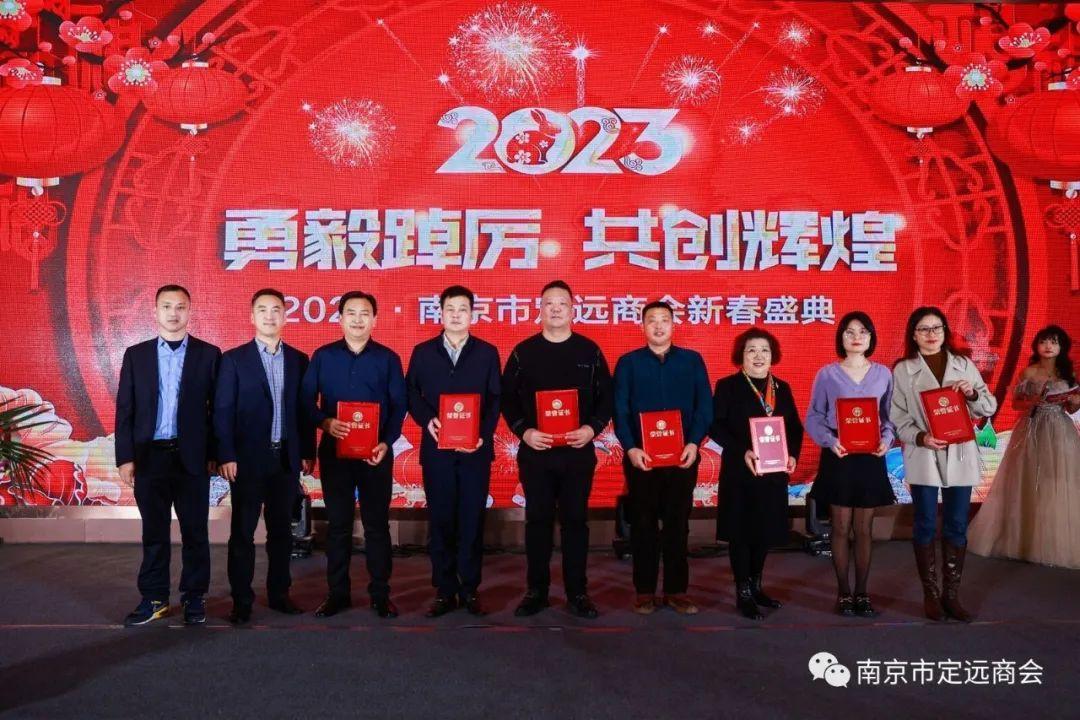 12月10日下午,南京市定远商会在理事单位——珍宝假日饭店(江宁店)召开主题为踔厉谋发展•勇毅谱新篇的“南京市定远商会四届二次会员大会暨2023新年盛典”。定远县原政协主席张洪、定远县人民政府副县长杜宝柱、上海复旦大学经济研究中心主任石磊教授、南京市定远商会会长杨超、商会顾问团副主席、河海大学公共管理学院创院院长、中国移民研究中心主任施国庆出席会议并讲话。定远县工商联书记王德兵、定远县商务局局长李大鹏、定远县市场监督管理局局长卢开阳、定远县特色产业链驻外招商分局等定远县代表团,38家友好商会的领导或代表、以及商会顾问团、监事会、常务副会长、副会长、理事、会员代表、工作人员、赞助单位等200余人参加活动。活动由陈东、张楚翘、孟娇主持。