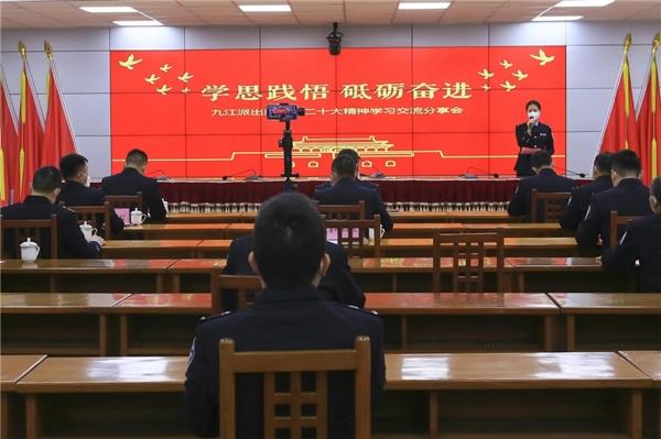 新思想引领新时代,党的二十大胜利闭幕,激荡起奋进的强音。踔厉奋发新征程,笃行不怠勇争先,为深入学习贯彻党的二十大精神,12月9日下午,九江派出所举行党的二十大精神学习交流分享会。会上,60、80、90后的老中青三代民警、辅警代表依次上台,结合自身对党的二十大精神心得体会,立足于岗位工作实际,用铿锵有力的语言、炽热浓烈的情感讲述自己扎根基层、服务群众、打击犯罪的感人故事,展现了新时代公安民警、辅警爱岗敬业、履职尽责、务实进取的精神,表达了对党的忠诚之心,引发全场观众的强烈共鸣。