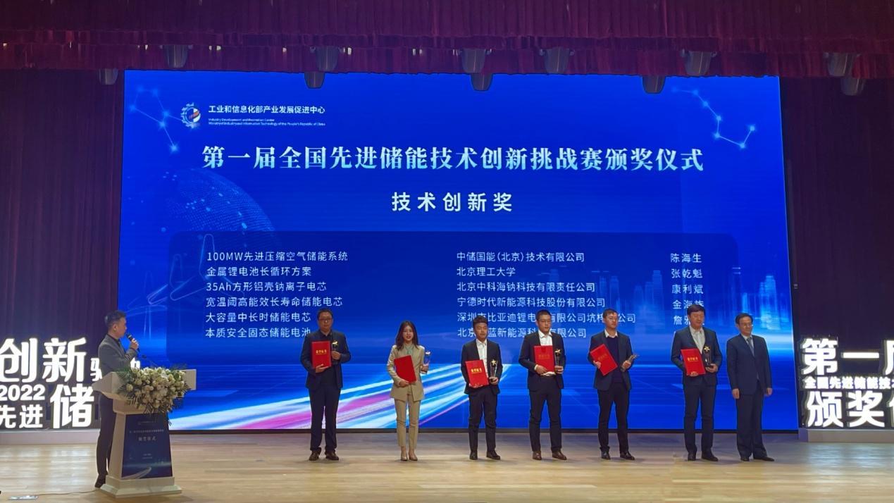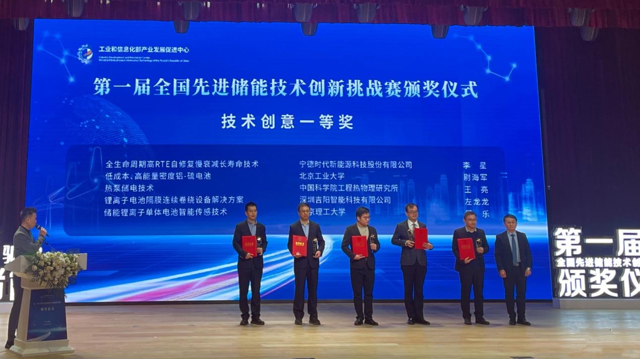 12月20日上午,第一届全国先进储能技术创新挑战赛颁奖仪式在江苏省溧阳市举行。工业和信息化部产业发展促进中心主任沙南生,江苏省发展和改革委员会副主任、省能源局长戚玉松,中国科学院物理研究所研究员李泓,常州市副市长徐华勤,及溧阳市领导周永强、朱威、李仁杰等出席活动。