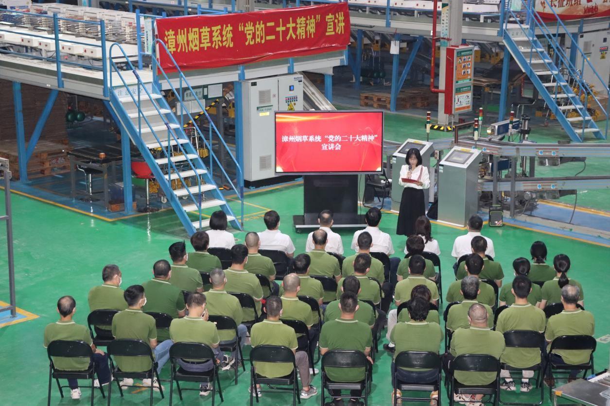 “从烟草物流资源配置不断优化,到绿色低碳循环成为烟草物流新底色,再到信息化与物流业务深度融合,新时代烟草人蹄疾步稳推进烟草现代物流建设。”青年宣讲团成员张玮臻的宣讲声伴随着分拣机和传输带的轰鸣声,用一个个发展硕果,勾勒出在党的带领下烟草物流发展的春华秋实;“十年有多长?十年又有多短?”宣讲团成员陈晓宇以十年为界,讲述着自己在十年的平凡生活中体验非凡的“中国速度”,讲述着中国十年“小变化”里的“大巨变”……东山康美村的榕树下、物流公司的车间里、南靖新时代文明实践中心的会场内、渔人码头零售客户的店门前,漳州烟草系统“党的二十大精神”青年宣讲声声入耳、字字铿锵,不仅突出“党味”、带有“烟味”,同时也增添“鲜味”、值得“回味”。