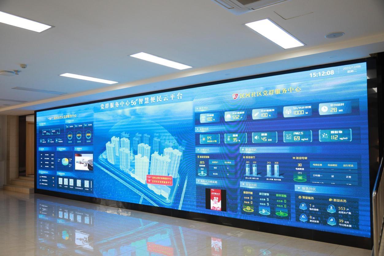 走进汉河社区便民服务站,数字大屏上多项场景映入眼帘。大屏幕上的一连串数据全面展示着辖区的实时情况,数字网络、宜居指数、安全预警、公示公告、政策查询一应俱全。